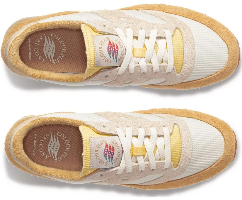 New York City based Colour Plus Companie collaborates with American running shoe titan, Saucony for a tasteful take on the classic Jazz 81. Inspired by vintage wooden & ceramic paint palettes as well as old dried paint, designer & Colour Plus founder Jordan Page mixes a handful of neutral tones, textured fabrics & a colorful gradient embroidered tongue label to create a shoe that appeals to sneaker heads & everyday shoe wearers alike. Titled, “Find Your Colour”, Saucony’s motivational slogan “Find Your Strong” is given a lively twist to incite artistic ingenuity within would-be customers.
